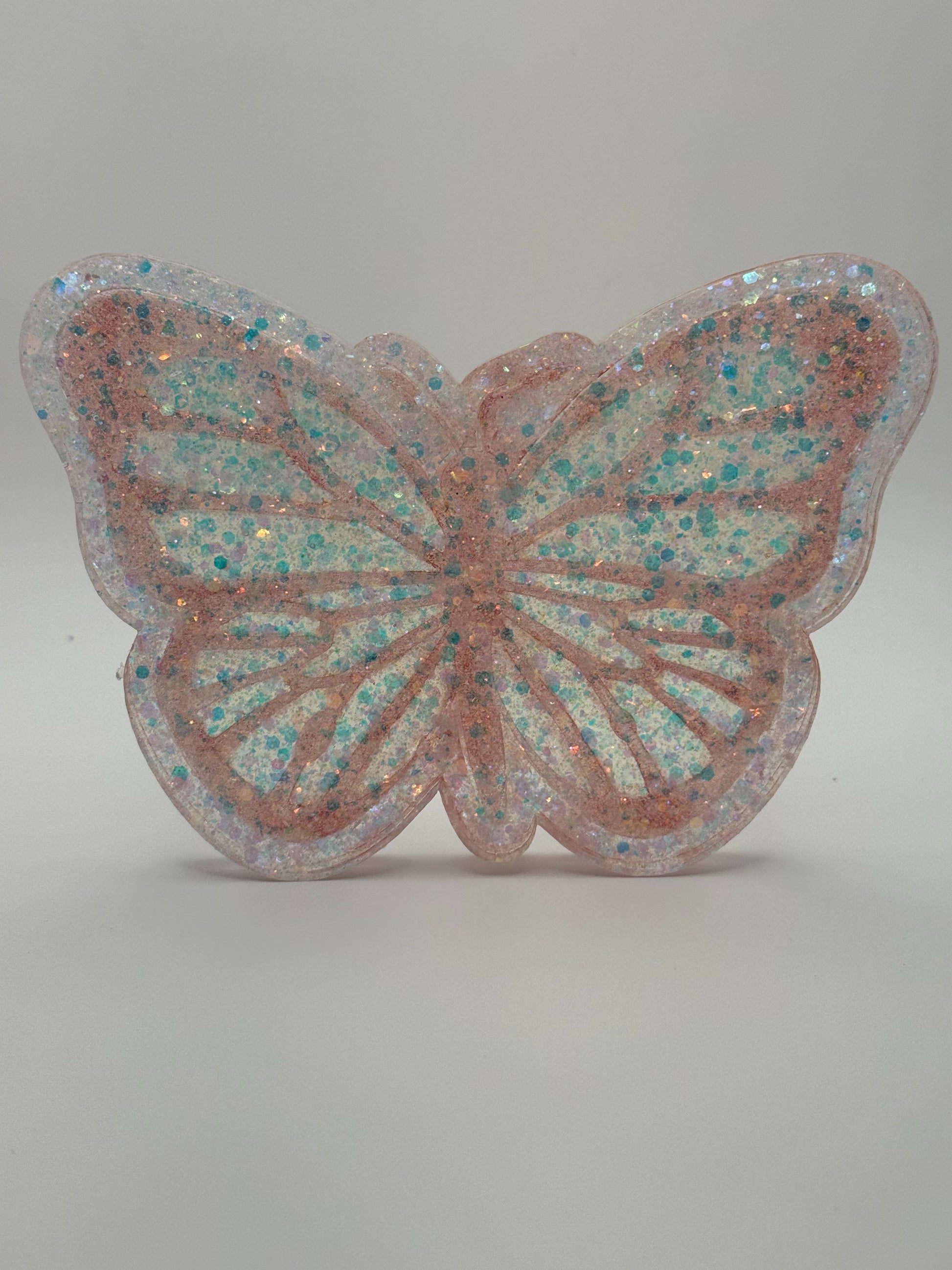 This butterfly resin art captures delicate wings frozen in time with shimmering detail. Perfect as a desk display or thoughtful gift.